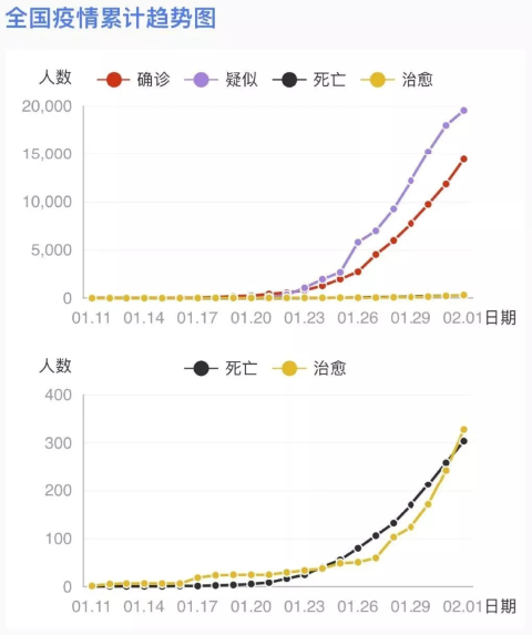 國家衛(wèi)生健康委收到31個?。ㄗ灾螀^(qū)、直轄市)和新疆生產(chǎn)建設兵團累計報告確診病例14380例,現(xiàn)有重癥病例2110例,累計死亡病例304例,累計治愈出院病例328例,共有疑似病例19544例。
