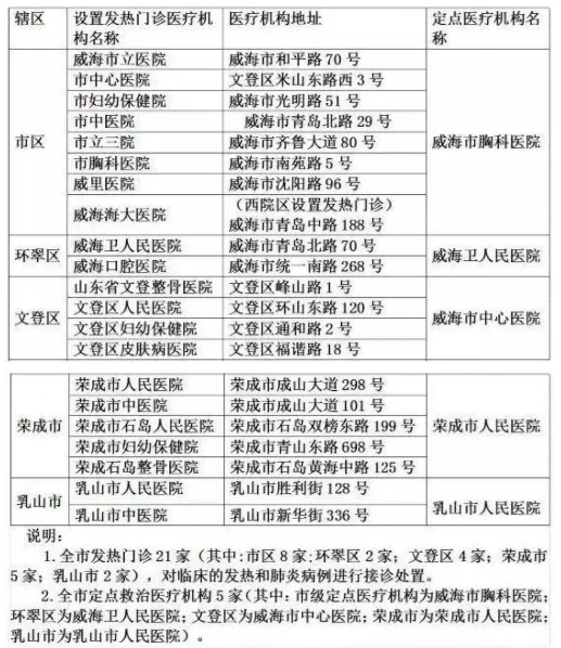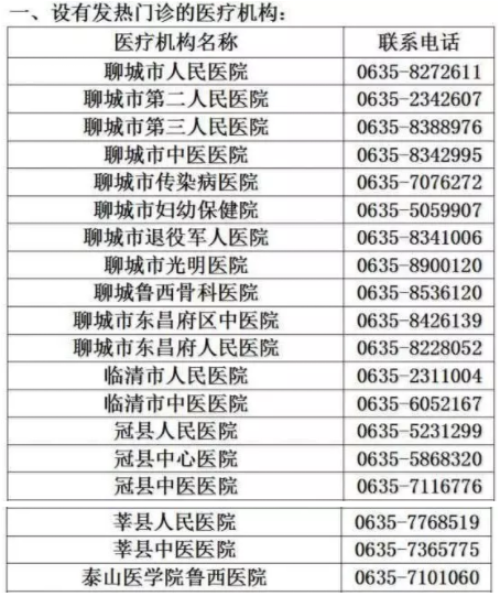 濱州市設(shè)有發(fā)熱門診的醫(yī)療機(jī)構(gòu)名單