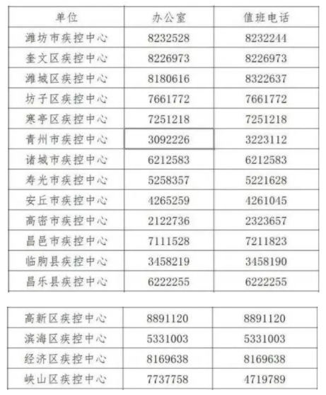 濰坊市縣兩級(jí)疾病預(yù)防控制中心名單