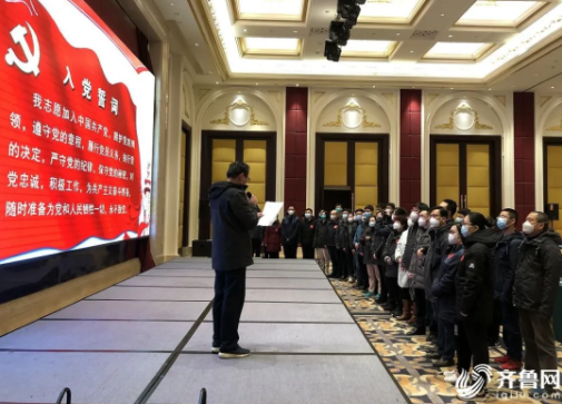 1月27日,中共山東省衛(wèi)生健康委直屬機關委員會同意成立山東省醫(yī)療隊臨時黨支部。54名黨員面向黨旗大家重溫入黨誓詞。