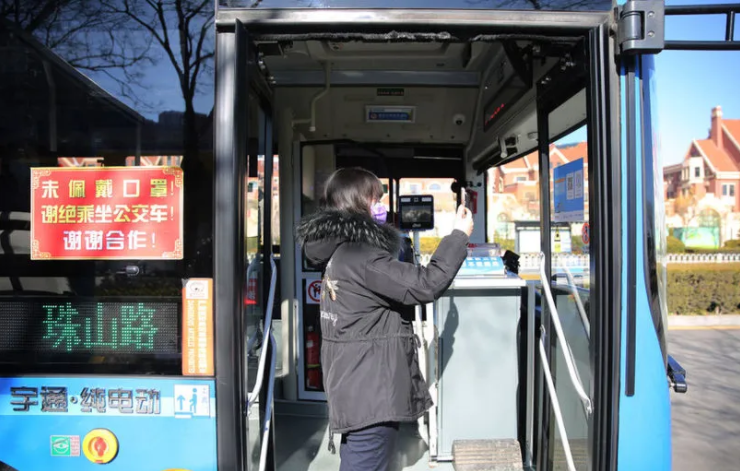 2月18日,按照駕駛員提示,乘客上車后掃碼“青島市交通出行同乘信息系統(tǒng)”,確認(rèn)乘客信息。(張進剛 攝)