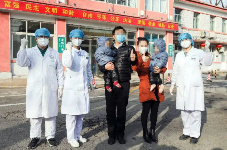 2月21日,濟南市傳染病醫(yī)院第八批四例新冠肺炎患者康復(fù)出院,其中包括一對11個月大的雙胞胎男孩。(黃中明 攝)