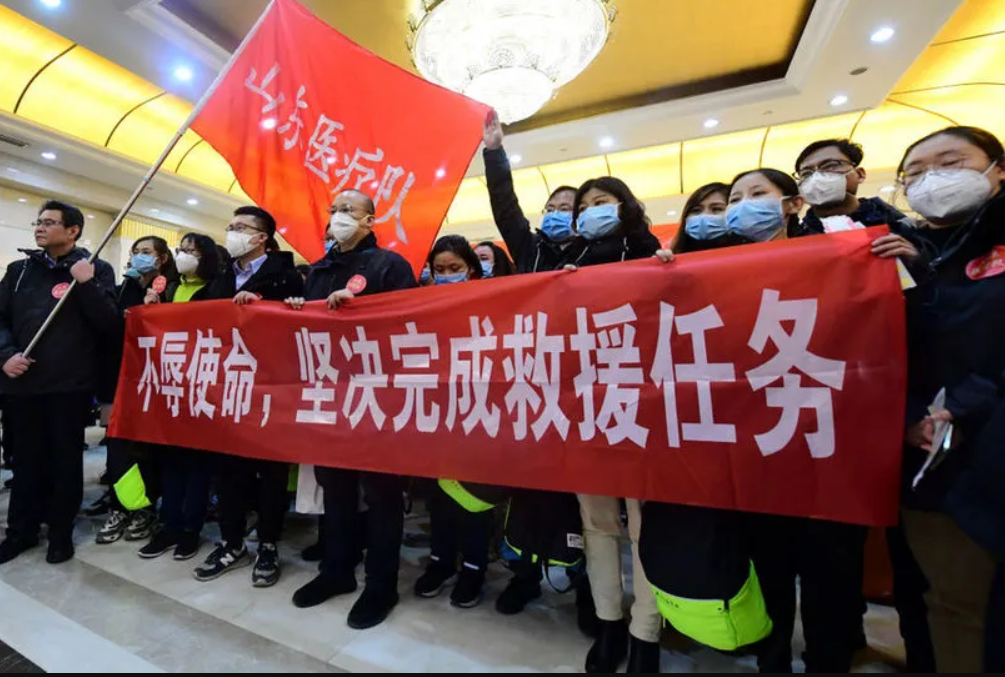 1月25日,大年初一,武漢市新冠肺炎疫情肆虐,山東省第一批援助湖北醫(yī)療隊143名勇士千里急馳,英勇逆行。截至2月23日,山東省先后派出12支援助湖北醫(yī)療隊共計1743名醫(yī)護人員。(謝永亮 攝)