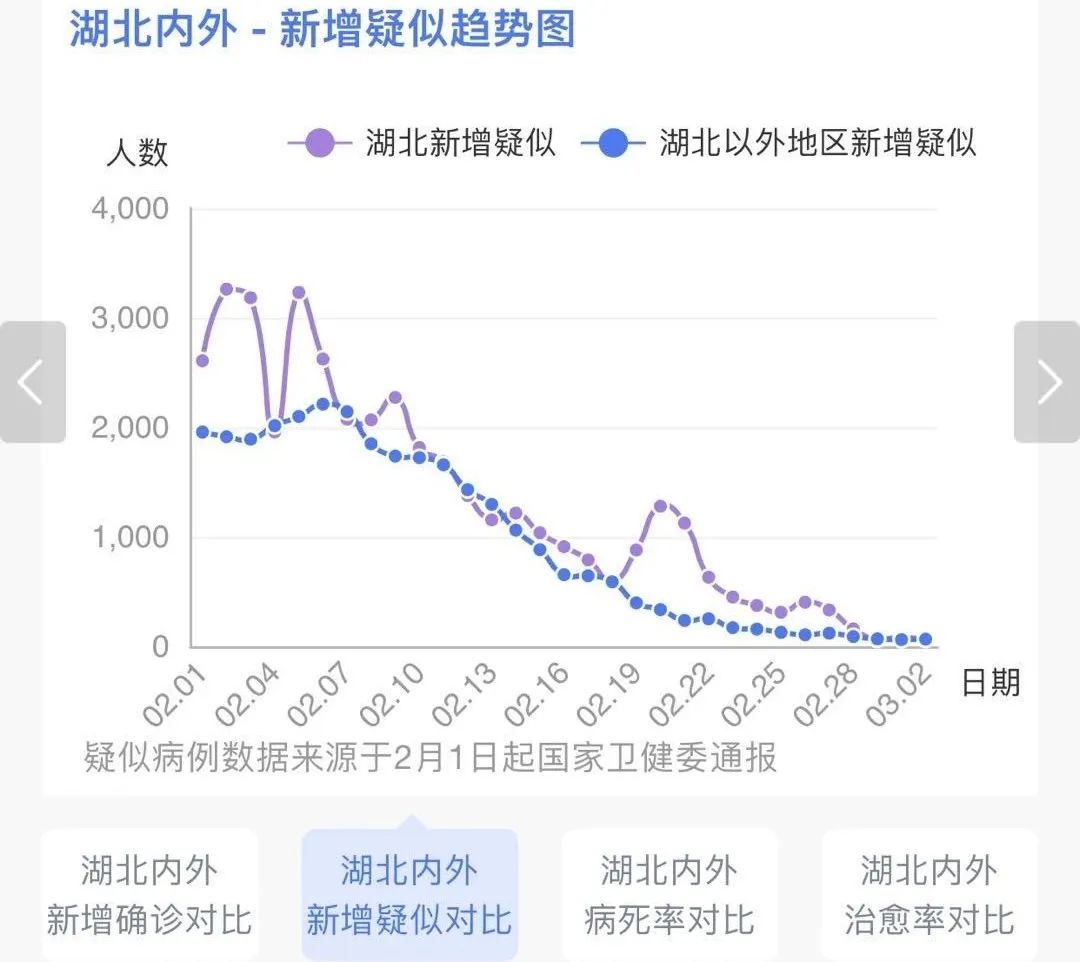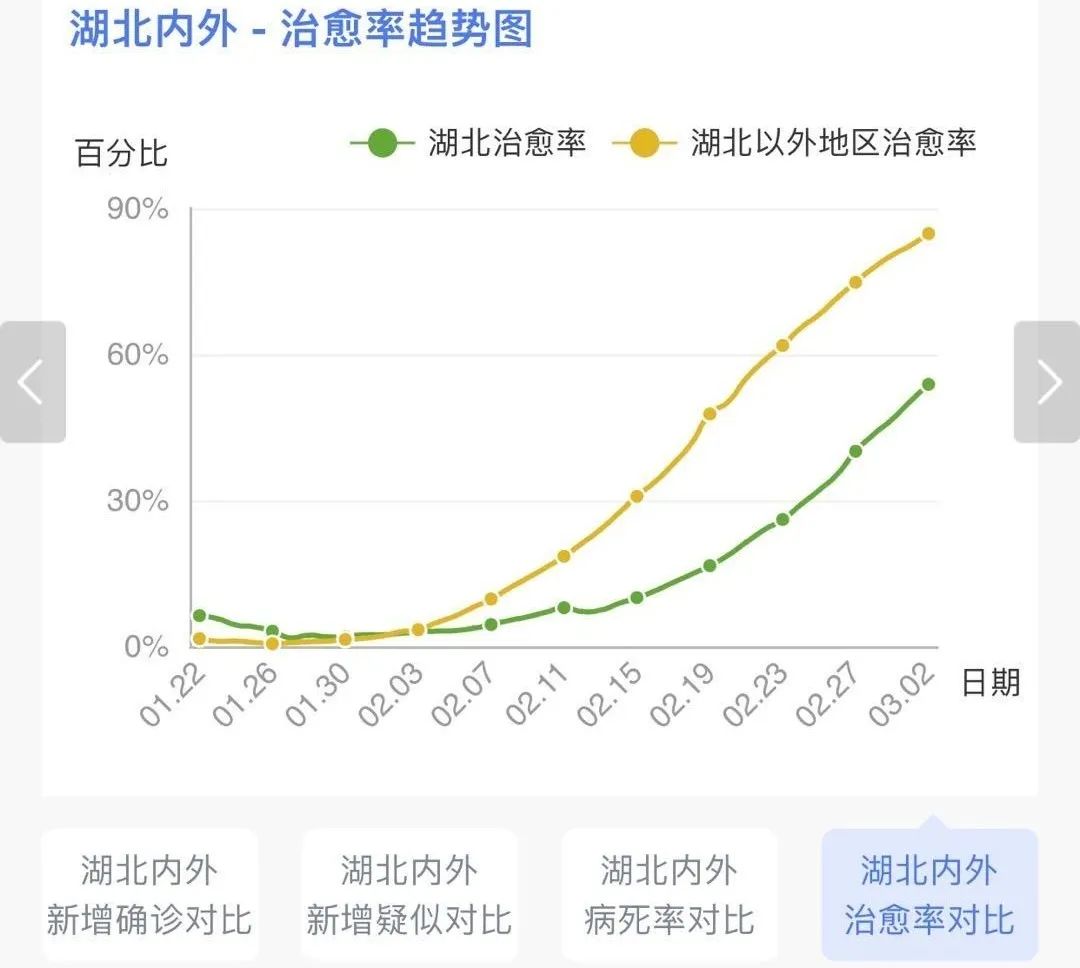 湖北新增確診病例114例(武漢111例),新增治愈出院病例2410例(武漢1846例),新增死亡病例31例(武漢24例),現(xiàn)有確診病例28216例(武漢24144例),其中重癥病例6593例(武漢6020例)。累計治愈出院病例36167例(武漢23031例),累計死亡病例2834例(武漢2251例),累計確診病例67217例(武漢49426例)。新增疑似病例64例(武漢62例),現(xiàn)有疑似病例434例(武漢316例)。