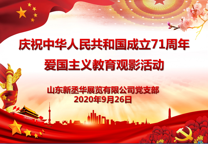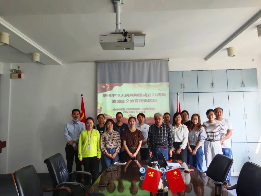 9月26日下午,山東新丞華展覽有限公司黨支部開展慶祝新中國成立71周年愛國主義教育觀影活動(dòng),組織收看愛國主義教育影片《決勝時(shí)刻》,活動(dòng)由黨支部副書記侯兆芳主持,全體黨員、預(yù)備黨員和入黨積極分子10余人參加活動(dòng)。