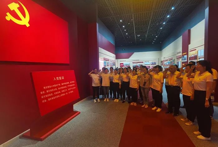 參觀結束前,全體黨員來到入黨宣誓臺前,面對鮮紅的黨旗,莊嚴肅穆地重溫了入黨誓詞。一句句鏗鏘有力的誓言彰顯了共產黨人的理想信念和責任擔當,堅定了終身堅守、矢志不渝的信念。