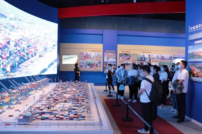 在講解員的帶領下,全體黨員仔細參觀了“篳路藍縷 苦難輝煌(1921—1949)”、“艱辛探索 砥礪前行(1949—1978)”、“勇立潮頭 改革開放(1978—2012)”、“走在前列 全面開創(chuàng)(2012—2021)”四個展區(qū)?,F場觀看了最早的《共產黨宣言》譯本、山東省人民政府成立時的第一面國旗、沂蒙六姐妹照片、濟南戰(zhàn)役復原場景、青島港全自動化集裝箱碼頭模型、山東省援助湖北醫(yī)療隊簽名隊旗等展陳圖片、實物場景和視頻短片。