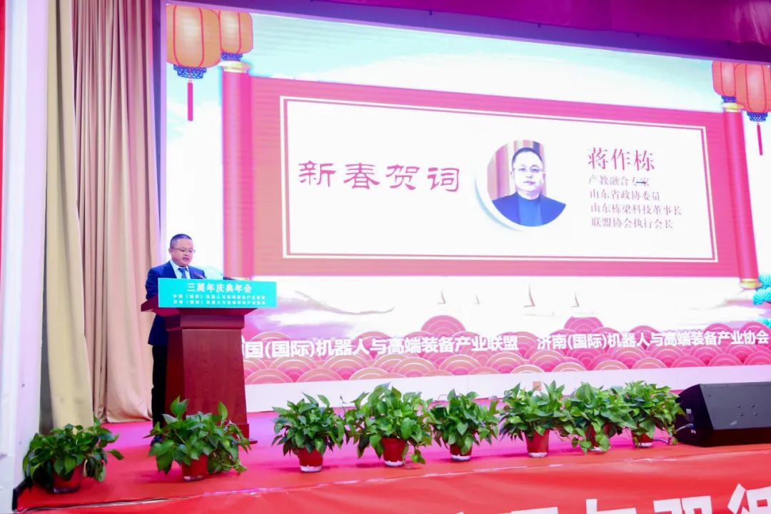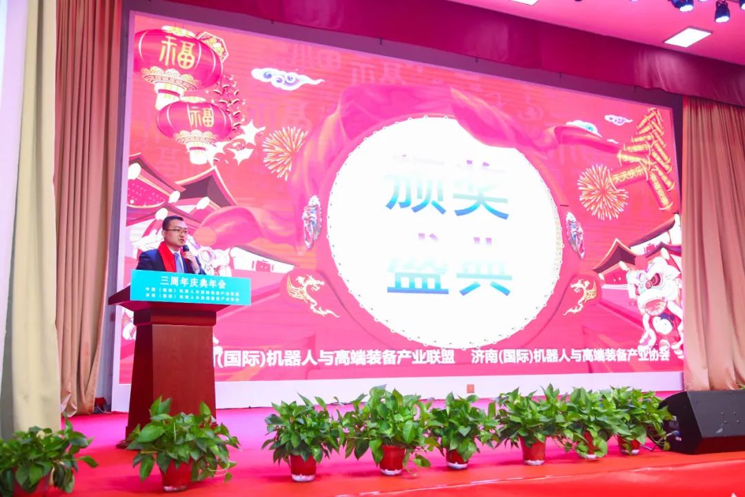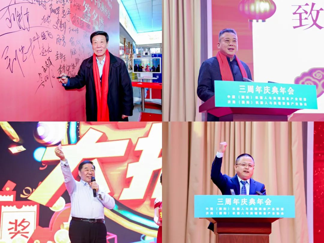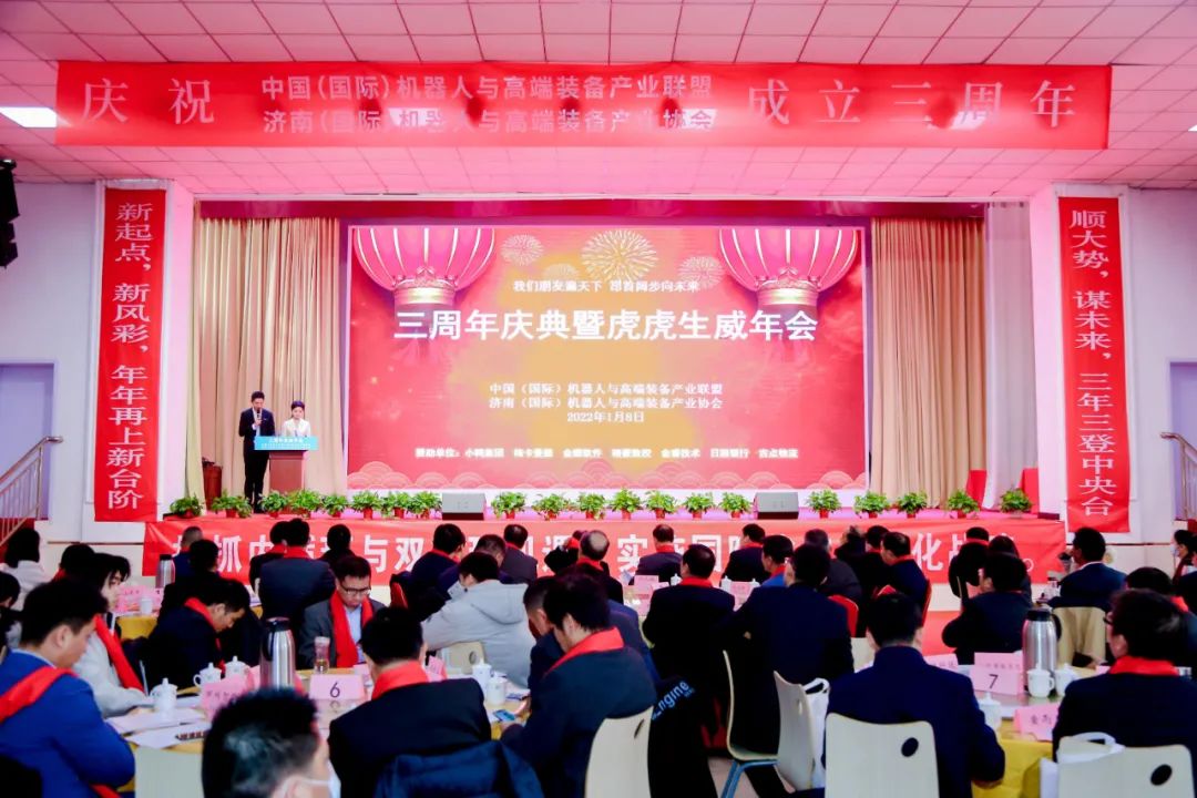 1月8日下午,中國(國際)機器人與高端裝備產(chǎn)業(yè)聯(lián)盟、濟南(國際)機器人與高端裝備產(chǎn)業(yè)協(xié)會隆重舉行協(xié)會成立三周年慶典和三生萬物虎虎生威迎春晚會。中、德、法120家企業(yè)200名代表參加會議,會議對三年來協(xié)會發(fā)展優(yōu)秀企業(yè)和個人進行了表彰,協(xié)會發(fā)布了促進內(nèi)循環(huán)與雙循環(huán)增進產(chǎn)業(yè)鏈配套的倡議書,與中央廣播電視總臺中國交通廣播進行了合作簽約以及產(chǎn)學研、產(chǎn)業(yè)鏈合作等簽約,協(xié)會藝術(shù)團組織了精彩的文藝節(jié)目助力三周年慶典。