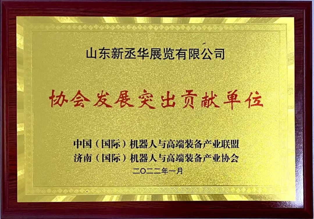 其中,山東新丞華展覽有限公司榮獲協(xié)會2021年度“創(chuàng)新服務(wù)示范企業(yè)”、“協(xié)會發(fā)展突出貢獻單位”。丞華展覽作為協(xié)會副會長單位,積極配合協(xié)會各項組織工作,以會展優(yōu)勢,發(fā)揮平臺作用,圍繞產(chǎn)業(yè)鏈積極為機器人與高端裝備產(chǎn)業(yè)發(fā)展搭建行業(yè)供需對接平臺。