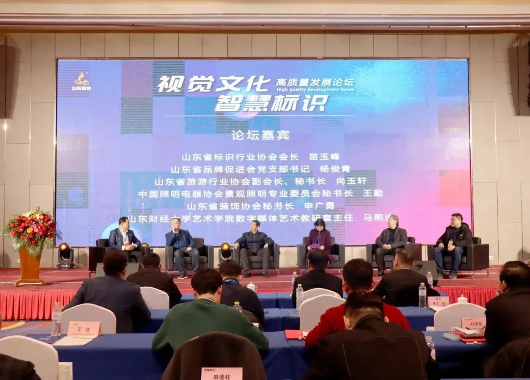 本次論壇邀請(qǐng)到山東省標(biāo)識(shí)行業(yè)協(xié)會(huì)會(huì)長(zhǎng)苗玉峰、山東省品牌促進(jìn)會(huì)黨支部書(shū)記楊俊青、山東省旅游行業(yè)協(xié)會(huì)副會(huì)長(zhǎng),秘書(shū)長(zhǎng)尚玉軒、中國(guó)照明電器協(xié)會(huì)景觀照明專(zhuān)業(yè)委員會(huì)秘書(shū)長(zhǎng)王勤、山東省裝飾協(xié)會(huì)秘書(shū)長(zhǎng)申廣勇、山東財(cái)經(jīng)大學(xué)藝術(shù)學(xué)院數(shù)字媒體藝術(shù)教研室主任馬熙逵共六位嘉賓,各位嘉賓均針對(duì)標(biāo)識(shí)行業(yè)現(xiàn)狀、發(fā)展方向等,從其他相關(guān)行業(yè)視角出發(fā),對(duì)標(biāo)識(shí)廣告的高質(zhì)量發(fā)展、行業(yè)之間交互共融方面,提出了意見(jiàn)。