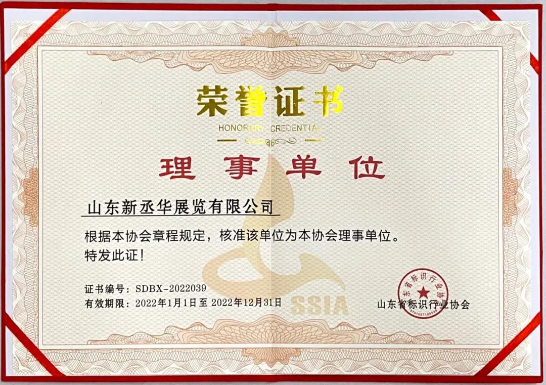 山東省標(biāo)識(shí)行業(yè)協(xié)會(huì)理事單位榮譽(yù)證書(shū)