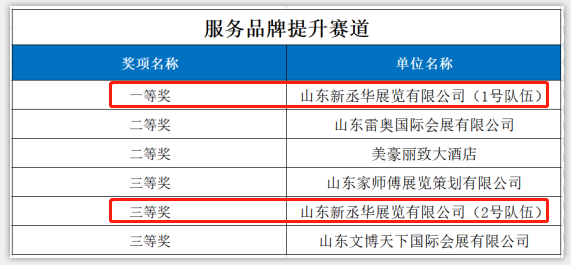 日前,由濟(jì)南市商務(wù)局、市總工會(huì)指導(dǎo),濟(jì)南文旅發(fā)展集團(tuán)、濟(jì)南市會(huì)展業(yè)協(xié)會(huì)聯(lián)合主辦,山東省會(huì)展產(chǎn)業(yè)發(fā)展協(xié)會(huì)、濟(jì)南市商務(wù)促進(jìn)中心支持,山東國(guó)際會(huì)展集團(tuán)具體承辦的濟(jì)南市首屆會(huì)展行業(yè)“項(xiàng)目策劃、特裝設(shè)計(jì)、服務(wù)品牌提升”創(chuàng)意大賽決賽在線上圓滿落下帷幕。山東新丞華展覽有限公司分別榮獲“服務(wù)品牌提升”比賽一等獎(jiǎng)、三等獎(jiǎng)。