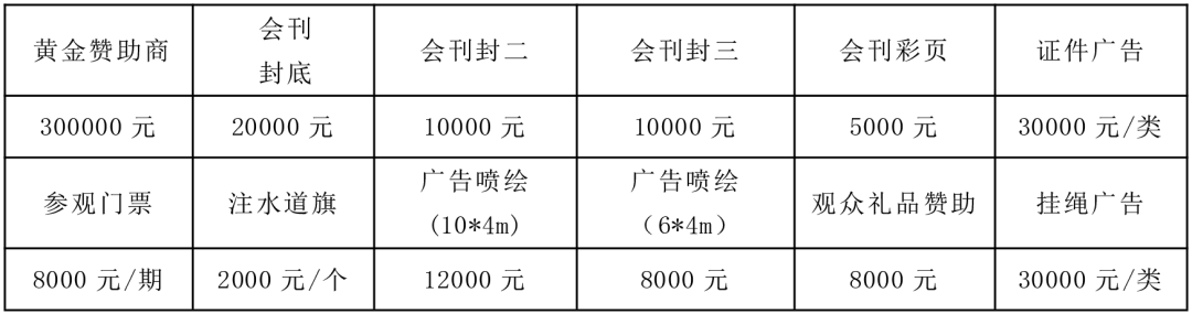 2. 精標(biāo)展位基本配置:3m×3m展位(包括精裝標(biāo)準(zhǔn)展臺(tái)、布幅廣告門(mén)楣、地毯、一桌兩椅、門(mén)楣射燈、展位射燈、220V電源插座);