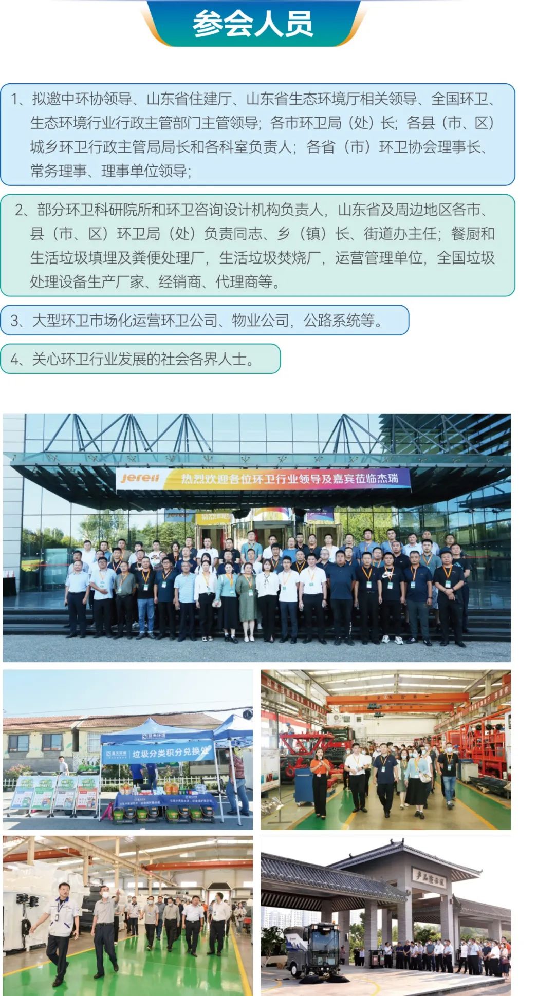 2、部分環(huán)衛(wèi)科研院所和環(huán)衛(wèi)咨詢設(shè)計(jì)機(jī)構(gòu)負(fù)責(zé)人,山東省及周邊地區(qū)各市、縣(市、區(qū))環(huán)衛(wèi)局(處)負(fù)責(zé)同志、鄉(xiāng)(鎮(zhèn))長、街道辦主任;餐廚和生活垃圾填埋及糞便處理廠,生活垃圾焚燒廠,運(yùn)營管理單位,全國垃圾處理設(shè)備生產(chǎn)廠家、經(jīng)銷商、代理商等。