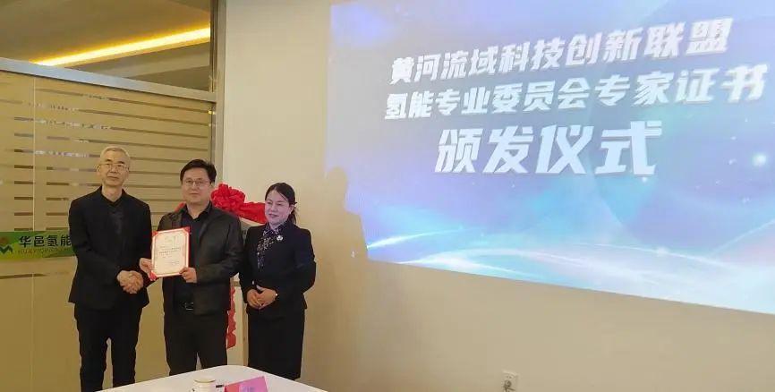 黃河流域科技創(chuàng)新聯(lián)盟氫專委副秘書長張文良、侯志紅為周飛鯤博士頒發(fā)了黃河流域科技創(chuàng)新聯(lián)盟氫能專委會專家證書。