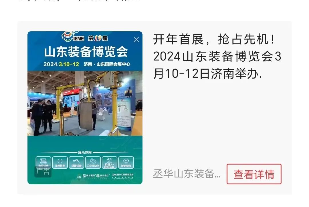 2024第19屆中國(guó)(山東)國(guó)際裝備制造業(yè)博覽會(huì),將于3月10-12日在山東國(guó)際會(huì)展中心盛大舉行。