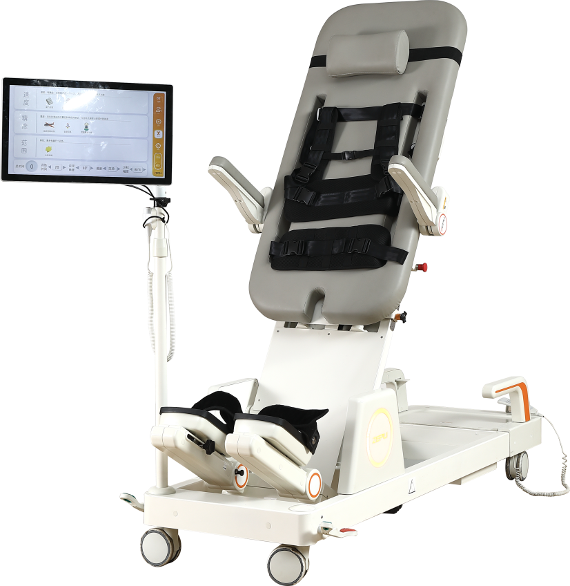 以神經(jīng)可塑性原理為基礎(chǔ),模擬人體真實(shí)行走時(shí)的重心變化,通過(guò)機(jī)械腿帶動(dòng)患者完成大量重復(fù)的生理步態(tài)訓(xùn)練,讓患者建立正確的運(yùn)動(dòng)模式,從而恢復(fù)正常行走功能。