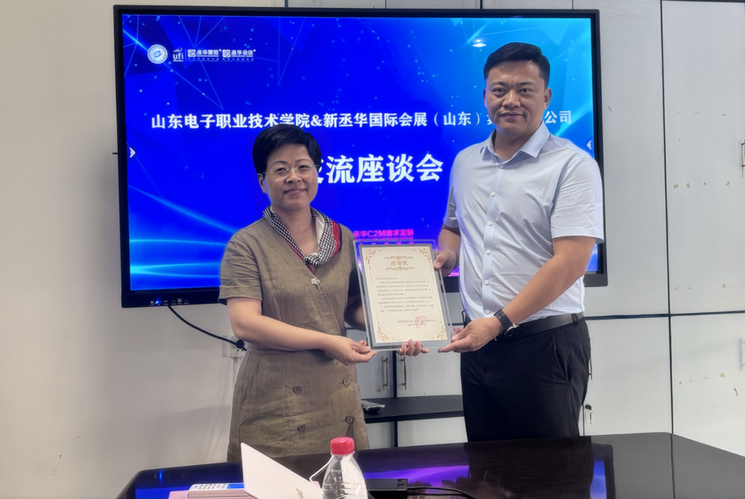 為進(jìn)一步強(qiáng)化校企合作,推動產(chǎn)學(xué)研深度融合,8月29日下午,山東電子職業(yè)技術(shù)學(xué)院數(shù)字創(chuàng)意學(xué)院副院長何曉明、會展策劃與管理專業(yè)負(fù)責(zé)人陳婷婷、張梓園一行到新丞華國際會展集團(tuán)開展校企合作座談交流會。丞華會展公司總經(jīng)理王西敏、丞華企業(yè)集團(tuán)副總經(jīng)理韓照景、人力資源部部長盛艷敏、丞華會展公司副總經(jīng)理於文峰等陪同參觀并座談。