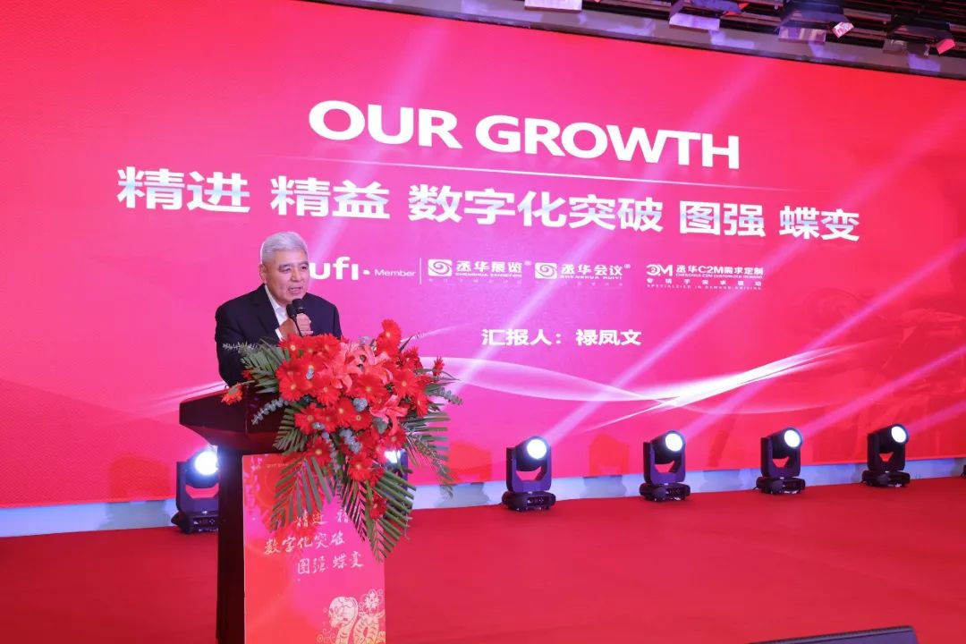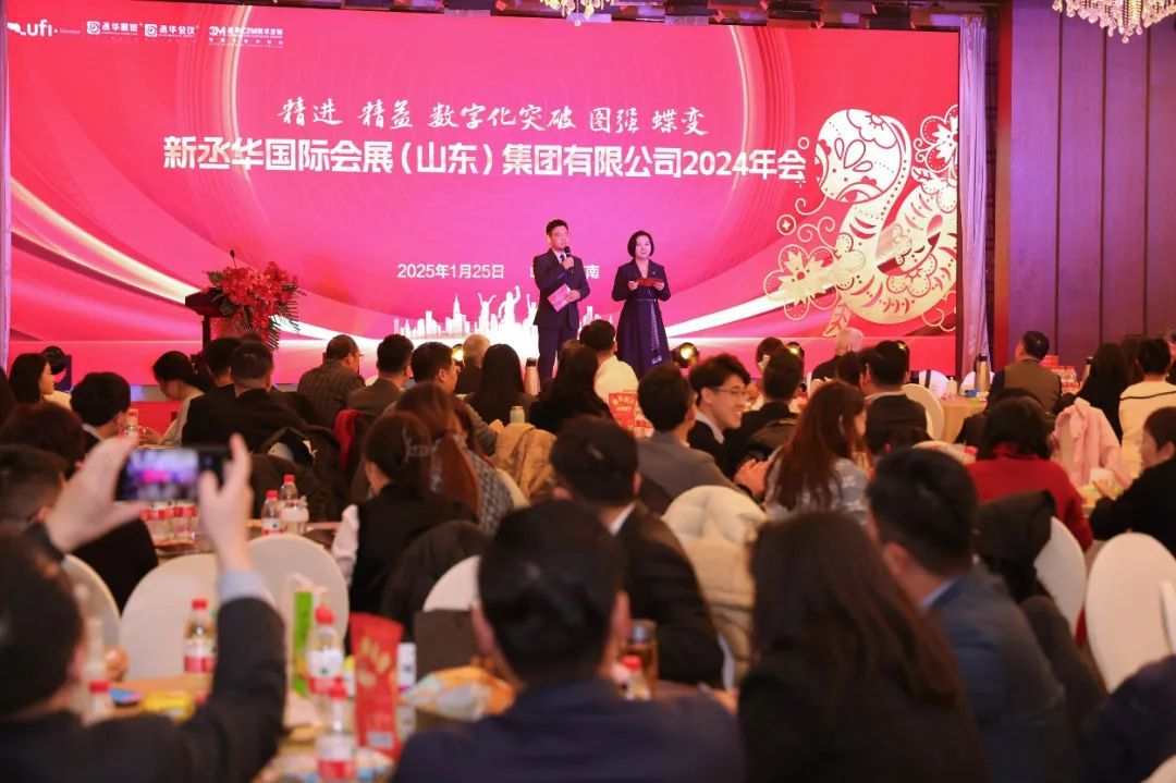 1 月 25 日,新丞華國(guó)際會(huì)展(山東)集團(tuán)有限公司2024年終總結(jié)會(huì)在濟(jì)南學(xué)府大酒店圓滿舉行。本次年會(huì)以“精進(jìn) 精益 數(shù)字化突破 圖強(qiáng) 蝶變”為主題,丞華企業(yè)集團(tuán)領(lǐng)導(dǎo)、部門代表以及會(huì)展集團(tuán)全體員工齊聚一堂,共同回顧過(guò)去一年的奮斗歷程,展望 2025年的全新發(fā)展藍(lán)圖。